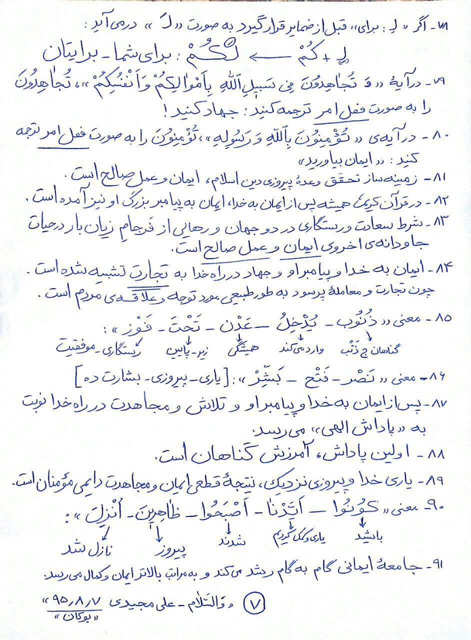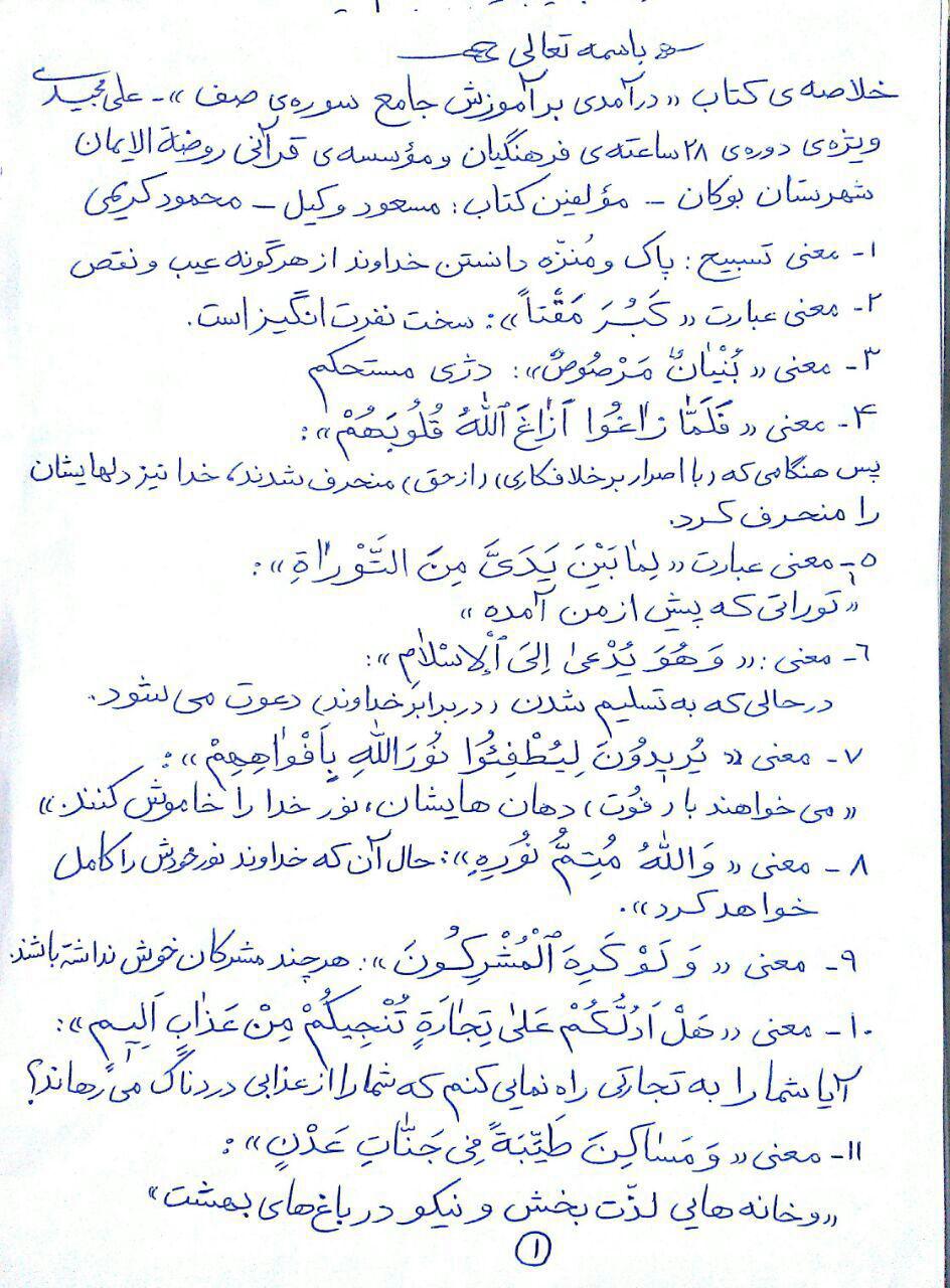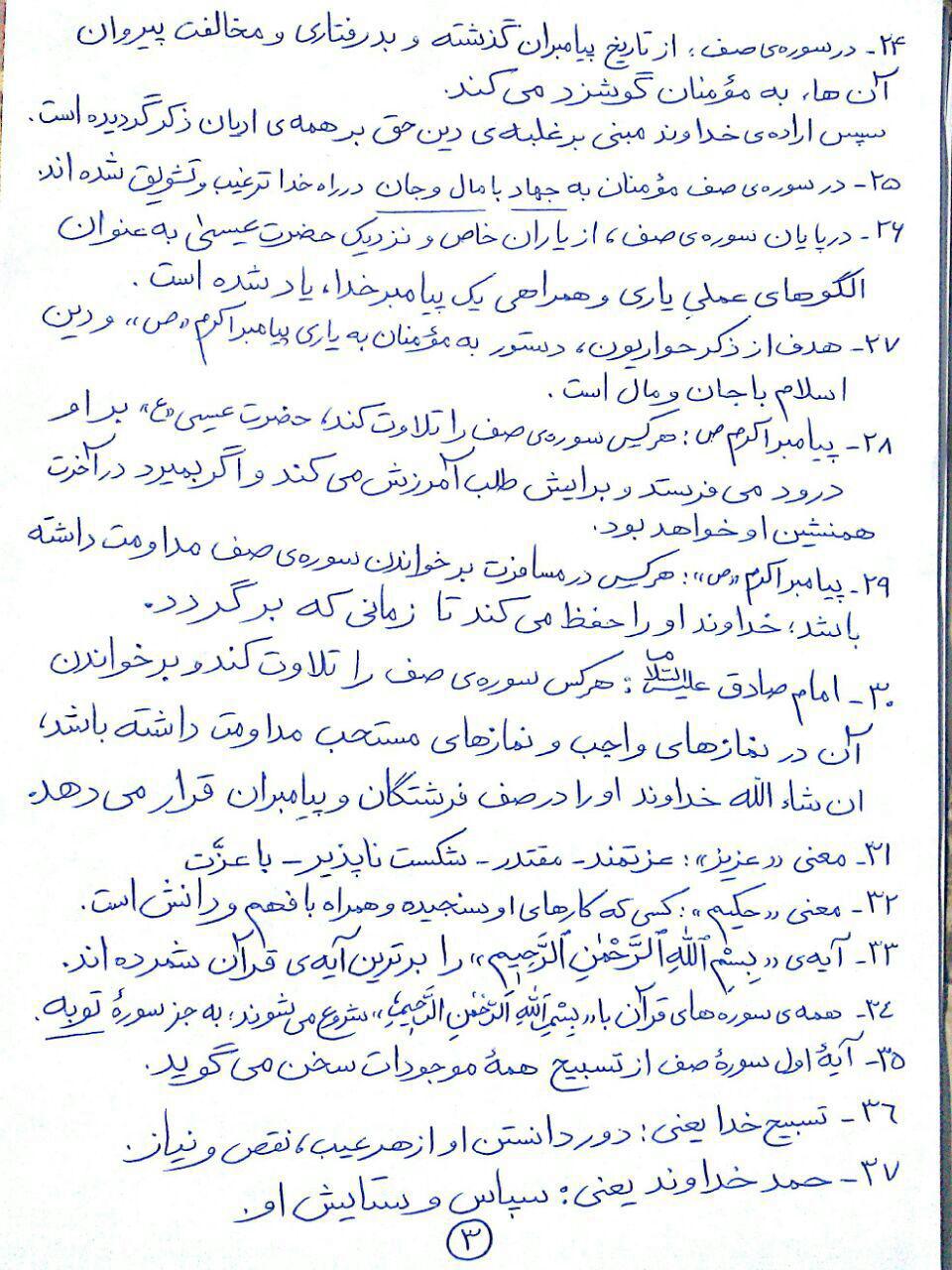 نمونه سوالات تفسیر آیات برگزیده .تفسیرسوره صف مخصوص فرهنگیان و