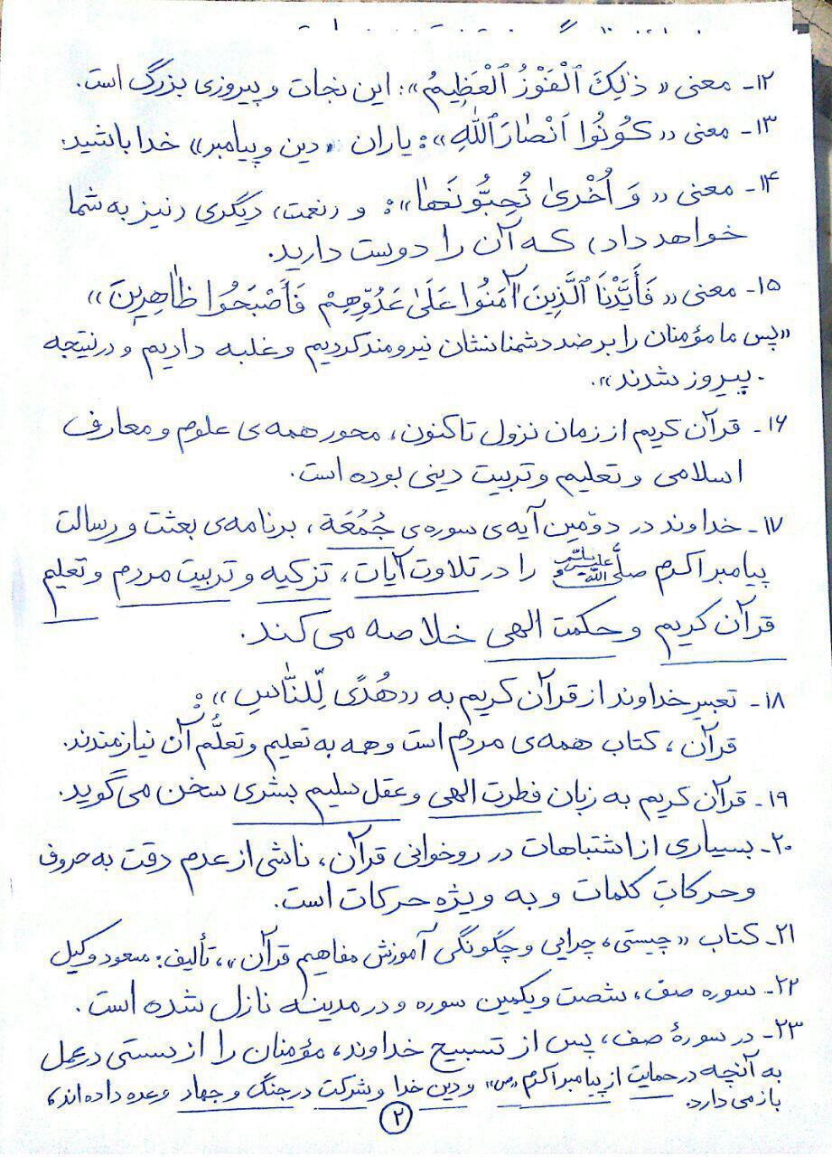 🌟دوازده سری نمونه سوال با جواب / مفاهیم سوره مبارکه صف